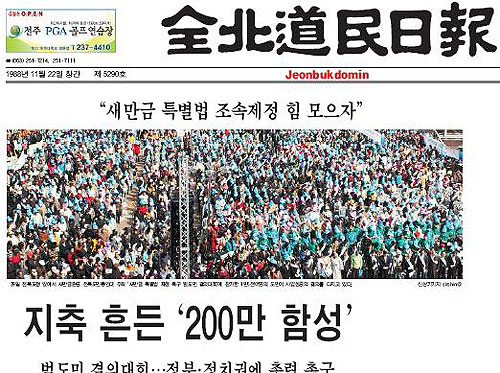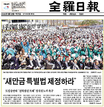 전북도민일보는 이 기사에서 "정부는 200만 도민의 함성과 절규를 귀담아 듣고, 정치권은 새만금 명품 만들기에 앞장서야 할 것"이라는
