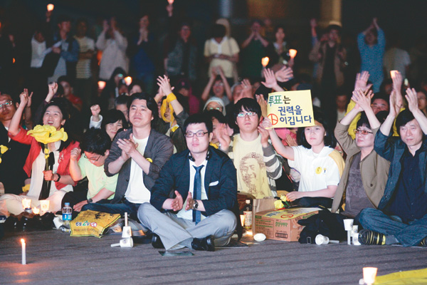 | ▲ 지난 2일 민주당 지지자들 천여 명은 초저녁부터 서울광장에 모여 개표상황을 지켜보며 선거결과를 즐겼다. 개표 초반에는 한명숙 후보의 승리를 예측했지만 3일 새벽 0.6%차이로 오세훈 후보가 당선됐다. 이치열 기자 truth710@ | ||