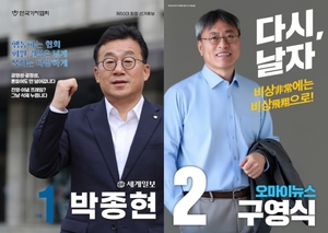 제50대 한국기자협회장 후보로 연임에 도전하는 박종현 현 회장(세계일보)과 인터넷 언론에서 최초로 출마한 구영식 오마이뉴스 선임 기자가 확정됐다.한국기자협회장 선거관리위원회는 24일 후보자 자격을 심사해 기호 1번 박종현 세계일보 편집국장석 부장, 기호 2번 구영식 오마이뉴스 선임기자 등 2명의 후보를 확정했다. 기호는 추첨으로 배정됐다.두 후보 간 경선으로 이뤄지는 이번 선거는 오는 8일 오전 9시부터 오후 6시까지 전체 회원 대상 모바일 투표로 진행된다. 후보별 선거 홍보물 등은 한국기자협회 홈페이지에서 확인할 수 있다.박종현