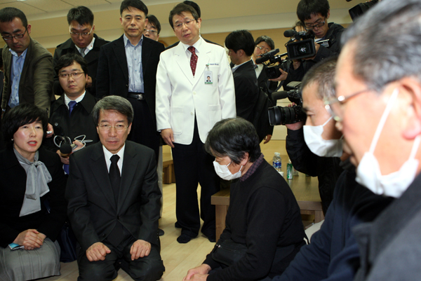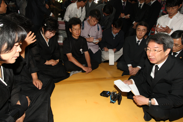 | ▲ 정운찬 총리가 15일 부산 중구 실내실탄사격장의 희생자의 시신이 안치된 양산 부산대병원 영안실을 찾아 일본인 유족들을 위로하고 있다. ⓒ연합뉴스 | ||