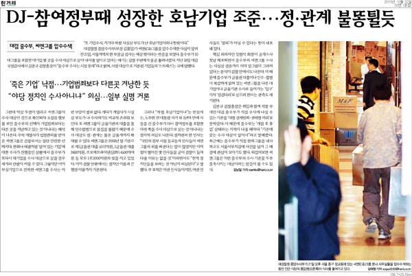 한겨레 "하필 호남? 다시 참여정부 쪽 수사 대상"
