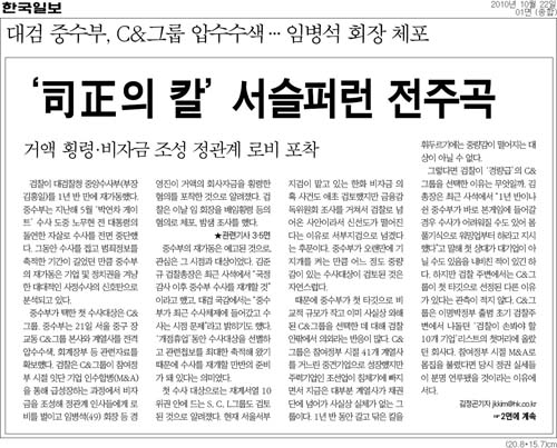 경향신문 <대기업 비자금·로비 의혹 검찰 '본격 수사' 칼 뺐다>