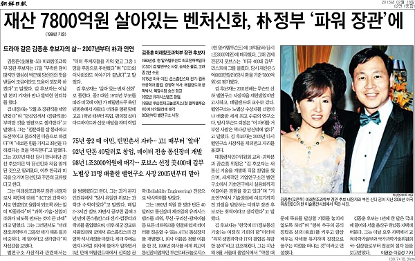 조선일보는 2면에서 <재산 7800억원 살아있는 벤처신화, 朴정부 ‘파워 장관’에>라는 제목의 기사에서 ‘드라마 같은 김종훈 후보자의 삶’을 비중 있게 소개했다. 대다수 신문들도 김 후보자의 ‘성공신화’에 적지 않은 지면을 할애했다.