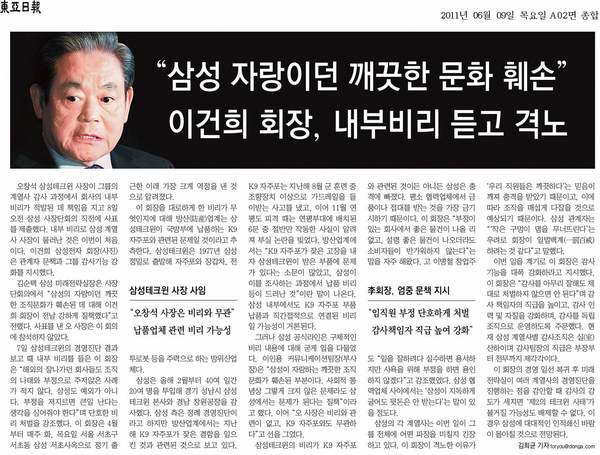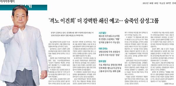 한국 언론의 삼성 관련 보도는 영국의 왕실 보도를 연상시킨다. 이 회장이 출국할 때나 입국할 때, 어쩌다 출근할 때마다 기자들이 따라 붙어 한 마디 한 마디를 기사로 만든다. 이 회장이 차를 바꿨다거나 누구를 만났다거나 딸들과 손을 잡고 행사장에 나타났다거나 이런 보도에는 아무런 관점도 없다. 맥락도 살피지 않는다. 일거수일투족을 중계하고 인용하고 과도하게 의미를 부여한다.
