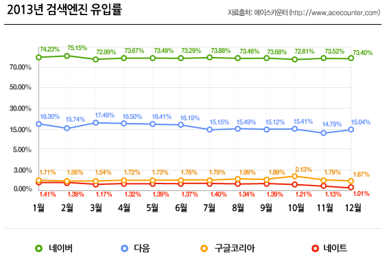 | ▲ 2013년 검색엔진 유입률 ⓒ에이스카운터 | ||