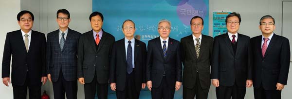 | ▲ 제4기 뉴스통신진흥회 이사들이 작년 12월 30일 오전 김종덕 문화체육관광부 장관으로 부터 임명장을 전수 받은 후 기념촬영을 했다. 좌측부터 정창영 이사, 조성부 이사, 심의표 이사, 이문호 이사장, 김종덕 장관, 정성만 이사, 허승호 이사, 손영준 이사. 사진=뉴스통신진흥회 홈페이지 | ||