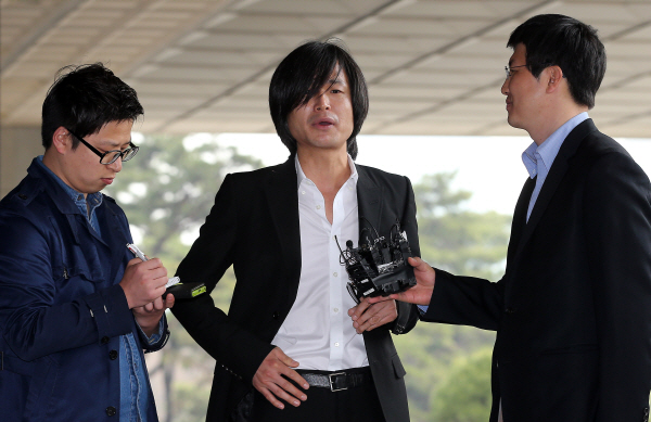 | ▲ 법정에서 기자들의 질문에 답하고 있는 시사인 주진우 기자. ⓒ연합뉴스 | ||