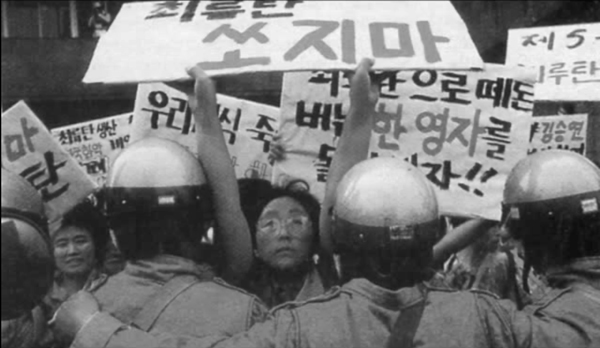그 시절 민주주의 정치를 실천하는 여성들은 1987년 6월 18일을 ‘최루탄 추방의 날’로 정해 온 몸으로 평화적 저항을 실천했습니다. ‘쏘지마, 최루탄!’
