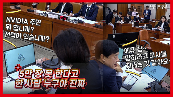이 질의를 듣던 이성윤 의원은 “망하라고 고사를 지내는 것 같다. 정말, 5선 의원이 배울 게 없어요”라고 비꼬았다. 나경원 의원은 “기사 좀 한 번 읽어 보세요. 누가 고사를 지냅니까? 걱정이 돼서 드리는 말씀입니다”라고 응수했다. 영상엔 나경원 의원의 대선 GPU 공약 발언에 비꼬는 박은정 의원 발언 등이 생생하게 담겼다.