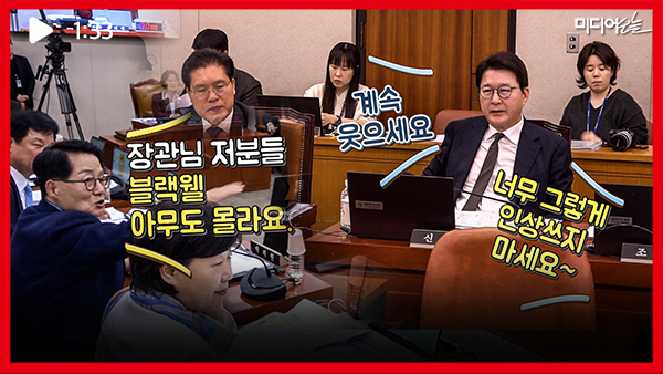 추미애 법사위원장이 “AI 주권을 확보하시기 위해 노력해 준 교섭력에 진심으로 감사드리고 앞으로도 잘 부탁드립니다. 박수로 응원해 주시라”고 하자 여당 법사위원들은 크게 환호하며 박수를 쳤다. 반면 국민의힘 의원들은 별 호응을 보이지 않았다. 신동욱 국민의힘 의원은 “정말 잘하시는 거 보고 내년에 박수쳐 드리겠다”고 말했다. 송석준 의원도 “아직 (협상이) 진행 중이니까 방심하지 마시고”라고 말했다. 그렇게 국힘 쪽에서 박수를 아끼자, 박지원 의원은 “장관님, 저분들은 블랙웰 아무도 몰라요”라고 한마디 해 여당 쪽에서 웃음이 터졌다.