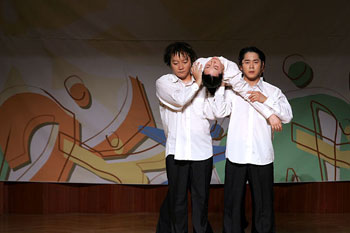 | ▲ 극단 '모단메아리' 단원들이 민주화운동 과정을 몸짓으로 형상화한 마임공연을 펼치고 있다. ⓒ이창길 기자 photoeye@ | ||