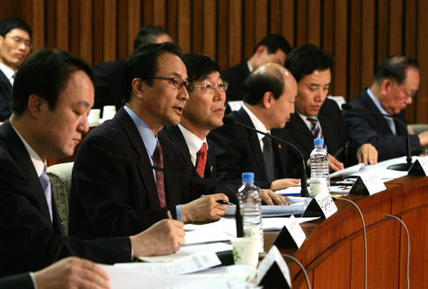 | ▲ 지난 13일 오전 국회 방송통신특별위원회에서 김명곤(왼쪽에서 두번째) 문화관광부 장관, 노준형 정보통신부 장관 등 정부 관계자들이 출석해 방송통신위원회 설치법안과 관련한 의원들의 질의에 답변하고 있다. ⓒ연합뉴스 | ||