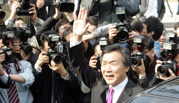 ▲ 손학규 전 경기도지사가 지난 3월19일 서울 백범기념관에서 열린 한나라당 탈당 기자회견 후 손흔들어 인사하며 차에 오르고 있다. ⓒ연합뉴스