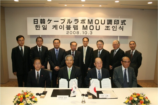 | ▲ 기술 협력 협정 체결 뒤 한·일 케이블 연구기관 관계자들이 기념 촬영을 했다. ⓒ한국디지털케이블연구원(KLabs) | ||